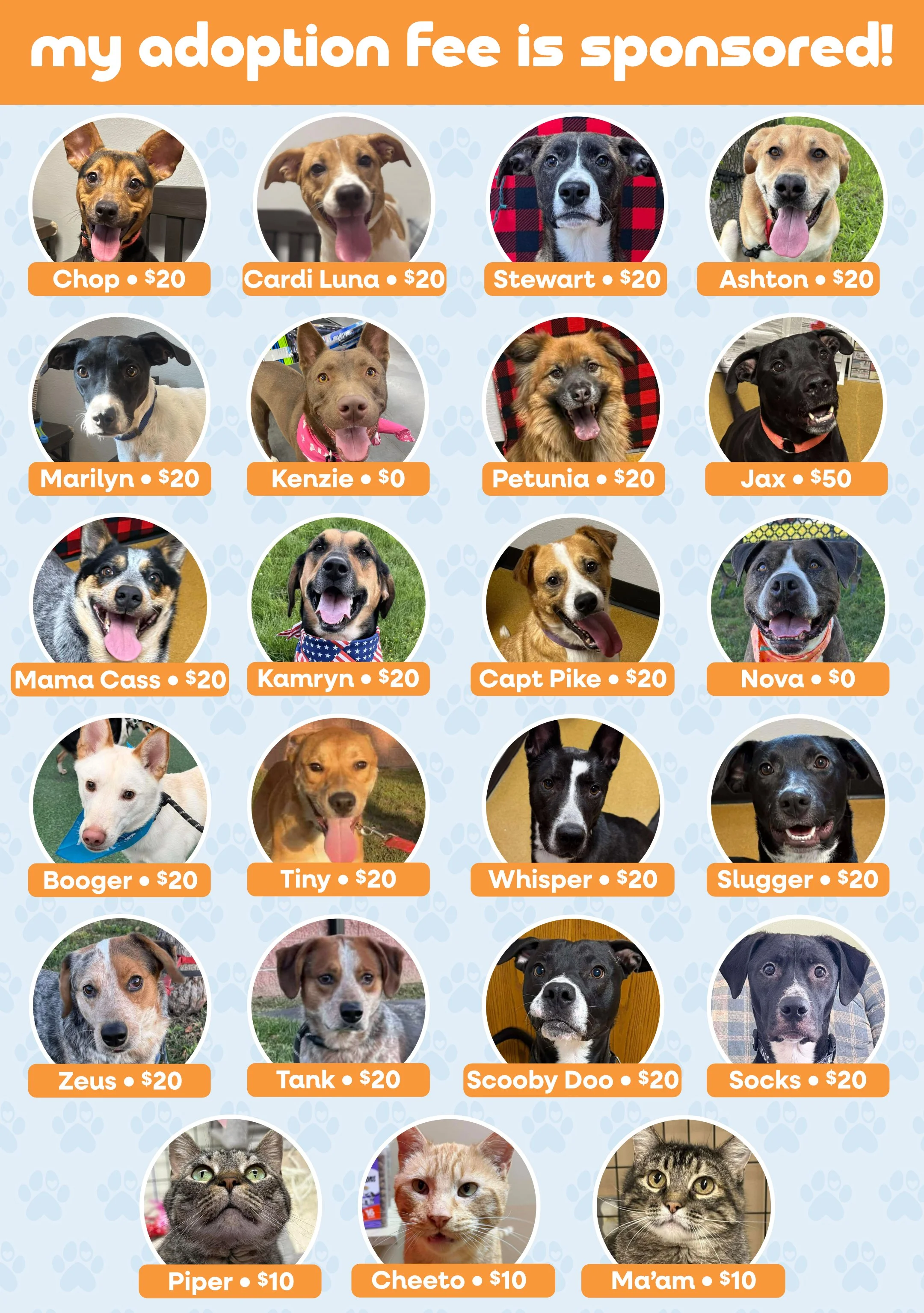 To adopt, apply in-person at the shelter or